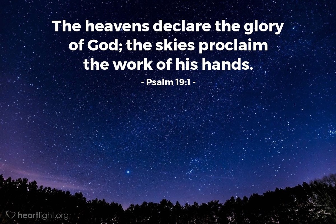 Psalm 19:1 says, “The heavens are telling of the glory of God; And their expanse is declaring the work of His hands” (NASB). This verse says that God is speaking and He is speaking loudly through nature to us. The question is: are we listening? We see the glory of God in nature and we have the word of God in Scripture. This means we all need to see the glory of God in nature and the word of God in Scripture. Meaning – we should appreciate God’s glory in this world He has given us. You can almost see David in Psalm 19:1 looking up at the sky at night on his back in some field taking it all in in appreciation to God. It is almost as if he was looking at some giant mega-tron or Omnimax and is just in awe of God’s power, God’s glory and God’s handiwork.